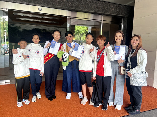 眉山市金融机构向泰国参赛运动员赠送中英文版《外籍来眉人员消费支付服务指引》