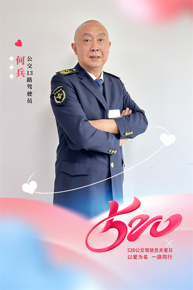 何兵,公交13路驾驶员,2016年11月进入公司。他始终秉持良好的工作作风和一流的服务态度,他是乘客心中的最美司机,同事眼里的热心人,他带领“东坡文明号”全体驾驶员开拓进取,连续7个季度荣获公司“优秀线路”称号。他杜绝行车斗气,从不与乘客发生矛盾,与乘客耐心交流、谦让礼貌,他爱岗敬业、无私奉献,不怕苦、不怕累,用实际行动做到全心全意为人民服务。