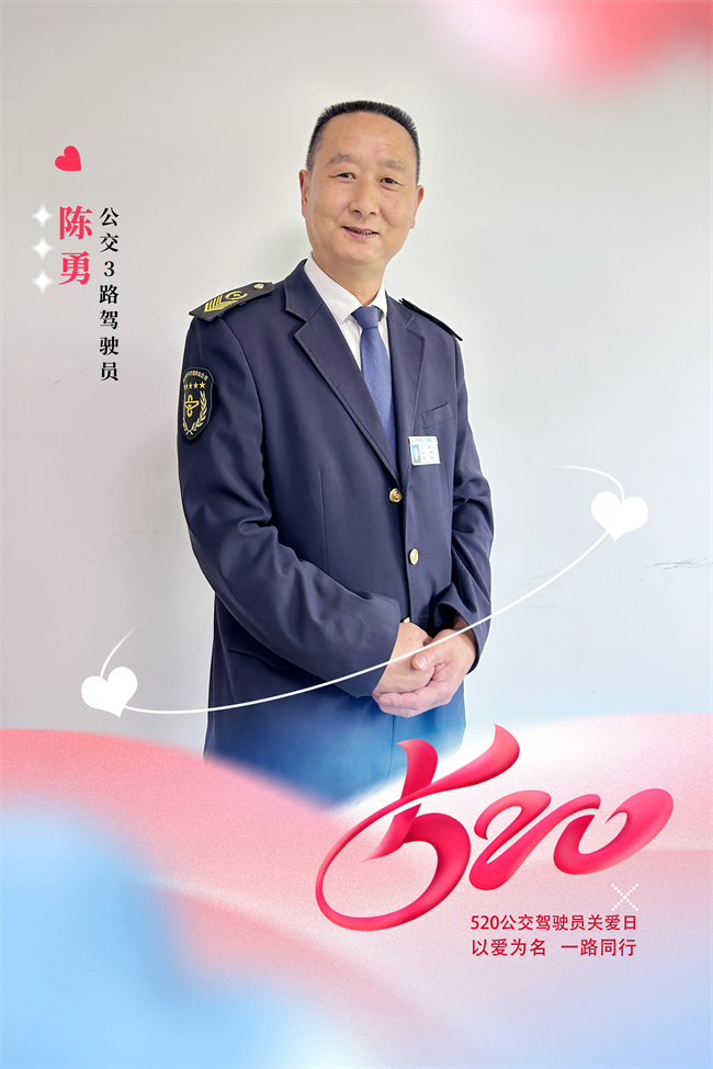 陈勇,公交3路驾驶员,2004年6月进入公司。他始终坚持“遵章守纪、礼貌待客、服务周全、安全驾驶”的原则,连续6年荣获公司“星级驾驶员”称号,在每季度卫生评比和百日优质文明服务评选中均取得优异成绩。他用执着的奉献和敬业精神守护着市民群众的安全出行,用实际行动诠释着公交人的责任和担当。服务没有终点,他奋力前行,用自己的智慧、坚持,在他所热爱的公交事业里绽放光彩。