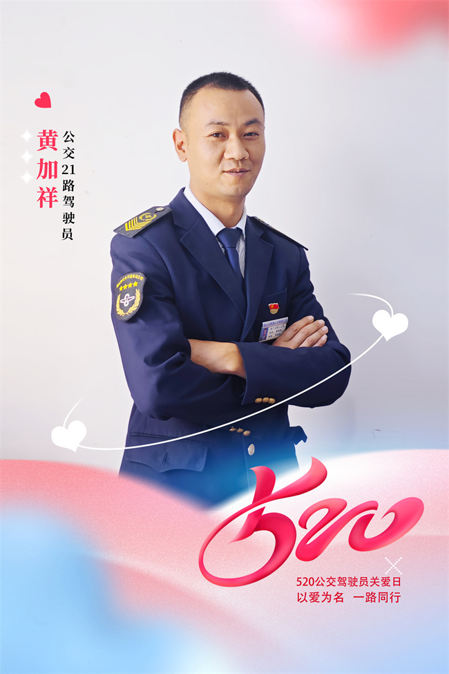 黄加祥,公交21路驾驶员,2017年5月进入公司。他始终坚持安全就是效益,以“线路有终点、服务无止境”的服务理念,连续6年未发生一起有责安全事故和有责服务投诉。工作中他严谨专注,每次发班前后都会对车辆进行一次全面检查,做到车辆技术状况心中有数。作为线路组长,积极发挥“传帮带”的作用,每次都毫无保留、耐心细致地向班组成员答疑解惑,以实际行动带领班组成员做好安全行车和优质文明服务。
