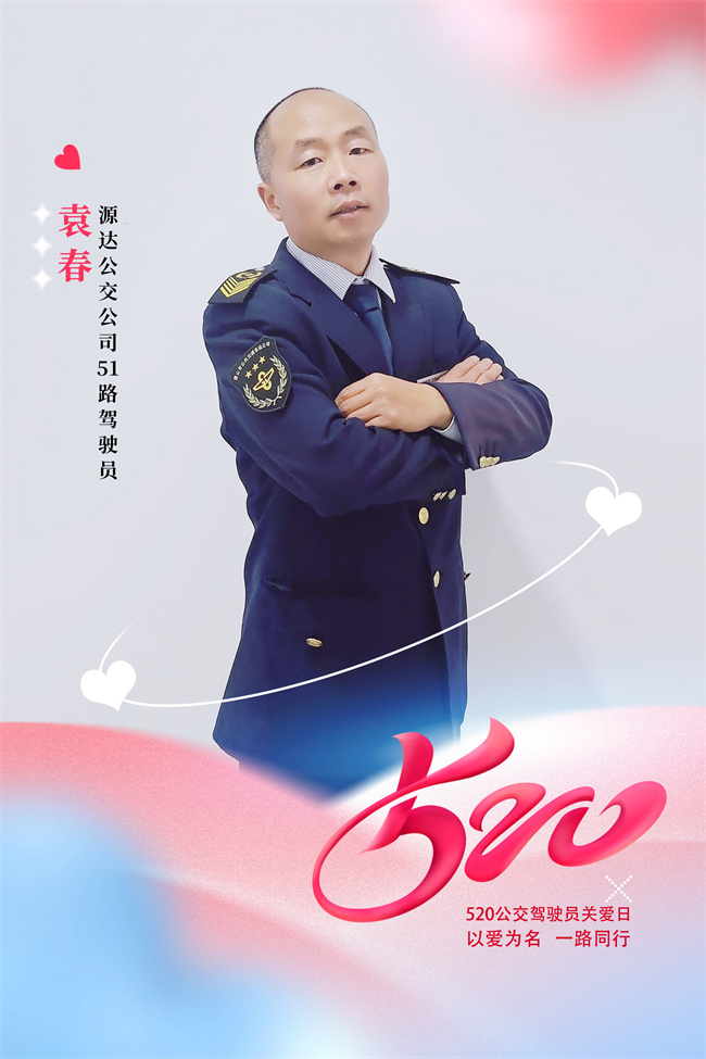 袁春,源达公交公司51路驾驶员,2018年4月进入公司。他始终把安全作为首要任务,恪守驾驶规范,严格遵守交通法规,每天驾驶公交车穿行在繁忙的街道上,为广大乘客提供安全、便捷的出行服务。行车时遇到横冲直撞的行人或车辆,他总是做到宁停三分,不抢一秒,不开霸王车、赌气车。他总是面带微笑,用心工作,有良好的职业操守,他的驾驶技艺和服务水平受到乘客的赞赏,热情、耐心地对待每一位乘客,展现了眉山公交人良好风貌。
