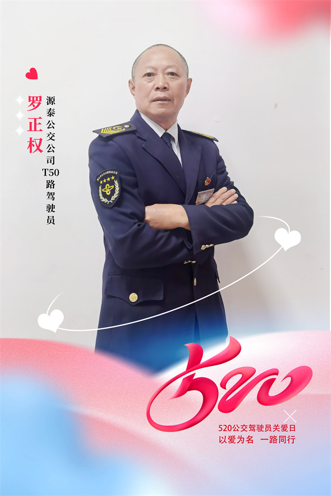 罗正权,源泰公交公司T50路驾驶员,2018年11月进入公司。作为一名线路司机、一名退役军人、一名共产党员,工作中他始终为乘客所想,急乘客所急,视乘客为亲人,用一名共产党员的高标准严格要求自己。入职以来,他心系乘客安全,真正做到了“无违章、无投诉、无事故”,曾多次拾金不昧、乐于助人,受到市民的点赞好评。2023年被授予眉山天府新区先进榜样,在支部建设中充分发挥了共产党员的先锋模范作用,退伍不褪色,服务人民的初心不改。