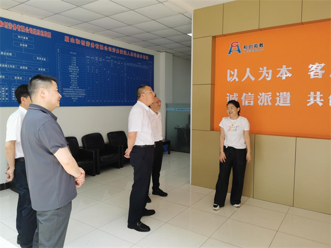 在和创劳务公司,王绪在全面了解了和创劳务公司的运营情况后,对该公司负责人提出的社保政策等问题进行了详细解答,指出该公司目前是全眉山市派遣劳务人员体量最大的公司之一,在劳务服务体系建设中占据举足轻重的作用。王绪鼓励该公司多开展人力资源服务,有效发挥人力资源服务稳就业、促就业的职能职责。