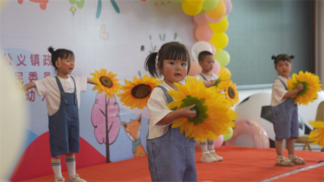 “今天是我们六一儿童节,是我们的节日,可以唱歌和跳舞,还可以抽奖,我今天很开心。”公义镇哇哈哈幼儿园学生舒晨兮表示。