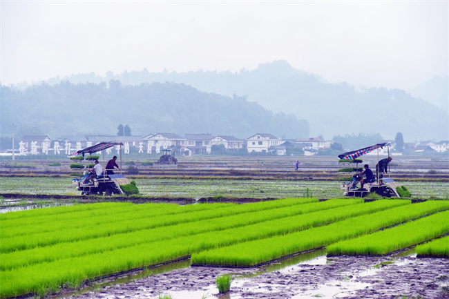 今年5月28日,在“天府粮仓”洪雅示范区柳江—东岳示范片的田头,秧苗栽插工作如火如荼进行,洪雅县丰之源农机服务有限公司总经理杨德林站在田边,边指挥农机手操作边感慨:“生产道路修到了田间,机械化作业更方便了,种田也更便宜了。”
