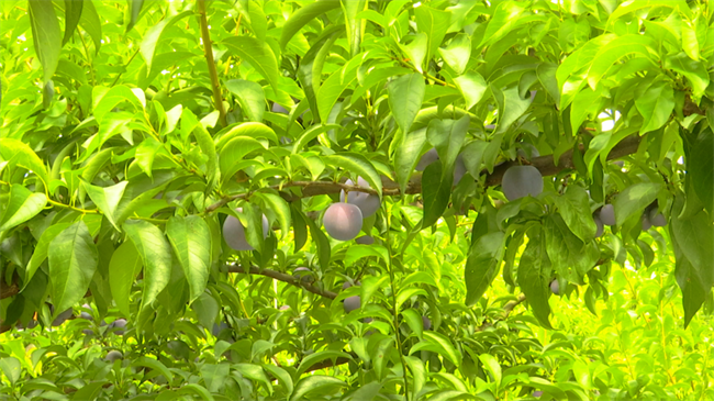 “你看这个李子结很多,摘一个下来直接可以吃,很脆、很甜。”村民钟洁开心地向笔者介绍,“我们还可以采摘李子挣钱,10块钱一个小时,一棵树要摘四五十斤。”