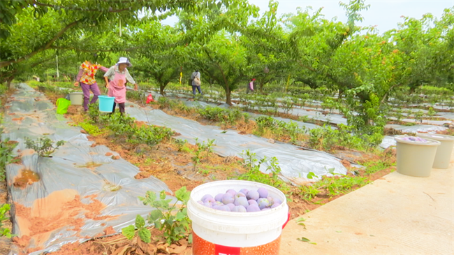 随着“五月脆”李子的成熟,外地客商也纷至沓来。在李子分拣场地,村民们正忙着将新鲜采摘的“五月脆”分拣、装箱、打包、称重,然后装车发往外地。