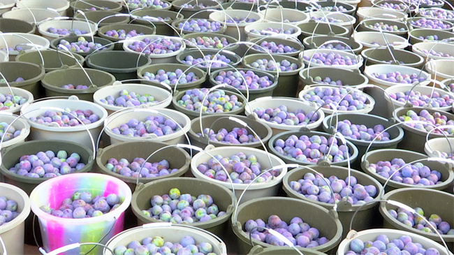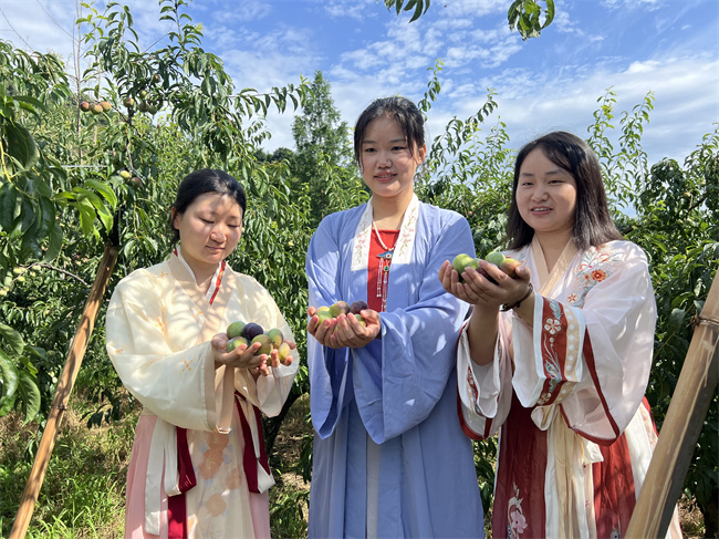 在洪雅县柳江镇,2240亩李子进入采摘期。在绿叶葱茏、果满枝头的李子园中,一颗颗李子色泽鲜艳、晶莹剔透,吸引不少游客前来体验采摘乐趣,绘就一幅幅生机盎然的“夏日丰收图”。游客王春霞说:“这个果园的李子长得很好,我们边吃边欣赏,拍照、发抖音,很开心。”据了解,该镇有凤凰李、脆红李等李子基地2个、李子品种8个。2023年,通过“集体带头+部门支持+专家指导+农户参与”模式,全镇共200余户农户参与李子管理,产量达200万斤,营收达400万元,集体经济收入增加20余万元。今年,从现状看,也是丰收在望。