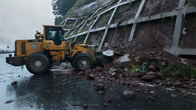 灾情发生后,洪雅县交通运输局公路养护段闻“汛”而动,第一时间启动汛期抢险应急预案,及时组织人员、机械赶赴现场,冒雨对滑坡、倒伏竹木等安全隐患进行处置,抢险保通。截至目前,已出动抢险人员50人,投入应急抢险机械设备6台,清理垮方约950m³,清理倒伏竹木300余株,目前道路已恢复通行。