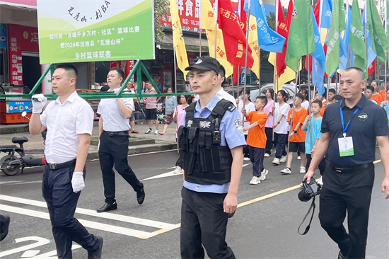 四川新闻网消息 在盛夏的热烈氛围中,7月19日,乡村篮球赛——第二届“村BA”在洪雅县瓦屋山镇火热开打。这场赛事不仅吸引了众多篮球爱好者的目光,也考验着瓦屋山派出所民辅警的安保能力。民辅警们以高度的责任感和使命感,全力护航赛事,确保每一场比赛都能在安全、有序的环境中进行。