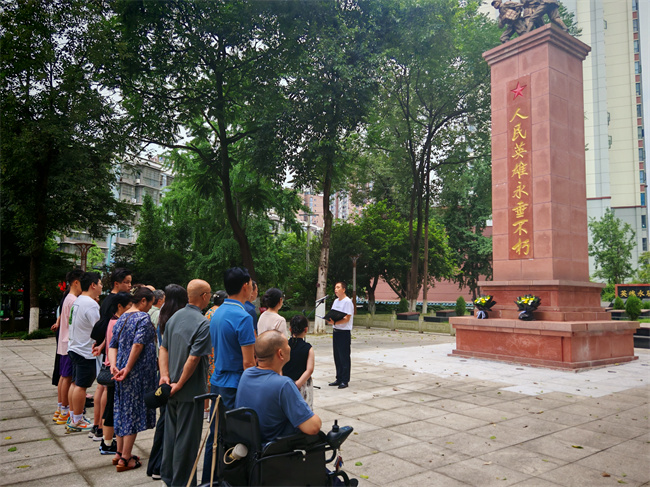 和风熙熙,鸟语阵阵,陵园内肃穆安宁。眉山市彭山区退役军人事务局红色讲解员李洪主持悼念仪式并为大家介绍了烈士陵园的基本情况和彭山籍烈士参加抗美援朝的英勇战斗事迹,家属代表向纪念碑献上花束,并三鞠躬、默哀,寄托对烈士的深切缅怀和崇高敬意!