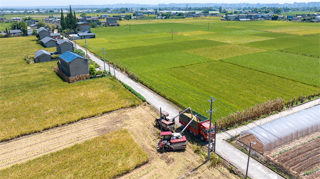 四川新闻网消息 又是一年丰收时。眼下,眉山市彭山区公义镇欣荣村的数智水稻示范基地里,水稻陆续进入成熟期,放眼望去,稻田在阳光下泛着金光,稻浪起伏,稻香阵阵,一派丰收景象。