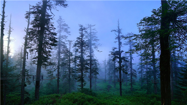 枯藤交错,古木参天,生灵万物竞峥嵘。今天的瓦屋山,美缀山林间,人在画中游,一派人与自然和谐共生的美好景象。