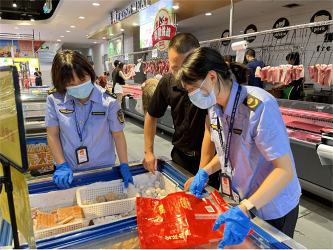 8月15日,彭山区市场监管局对城南市场和美家好超市销售的火锅食材质量安全开展了飞行检查。