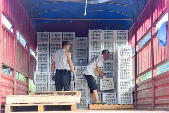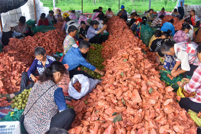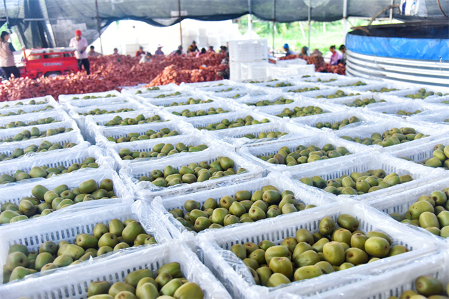 “基地种有红心猕猴桃360亩,主要是红阳和东红两个品种。目前,猕猴桃迎来最佳采摘时期,每天都要组织当地50余名村民采摘、分拣、搬运、装车等工作,每天采摘量约5万斤。”兴星猕猴桃专业合作社负责人黄国华介绍,今年是种植猕猴桃的第12个年头,产量已趋于稳定,果实个头也较大,预计亩产量两三千斤。