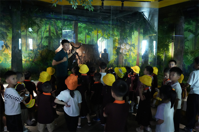 活动当天,孩子们在玉屏山森林生态博物馆,一边听着生动形象的讲解,一边通过实物、标本、图像、模型、多媒体等了解森林与人类的关系、洪雅森林的独特禀赋、生物多样性,
