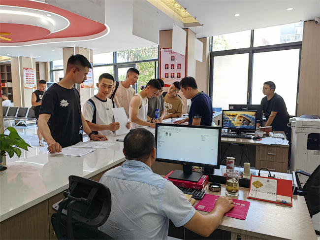 在区退役军人服务中心电子显示屏滚动播放欢迎标语,让阔别故乡已久的退役军人感受到浓浓的家乡情。光荣返乡退役军人踏进“家门”,个个英姿飒爽、精神抖擞,带着返乡的喜悦心情前来报到。在“军人退役一件事办理”窗口,工作人员热情为退役军人办理户口登记、党(团)组织关系转接、社保医保转接等高效便捷的“一站式”服务。