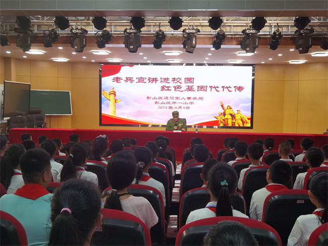 又是一年开学季,为引导广大青少年传承红色基因、赓续红色血脉,厚植爱党、爱国、爱社会主义的情感,9月9日,彭山区退役军人事务局组织老战士红色宣讲团成员到彭山一小开展红色主题宣讲活动,参战老兵用“红色精神”点亮了孩子们的“开学第一课”。