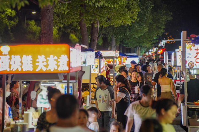此外,南巷慢街、希望城美食广场、红星夜市、万家水碾幕野营地等地同样人头攒动。随着夜幕降临,多种形式的夜产品在彭山大街小巷轮番亮相,夜市呈现一派热闹繁华景象。市民消费潜力被进一步激发,夜间消费不断增多,经济也在这份热闹中逐渐升温。