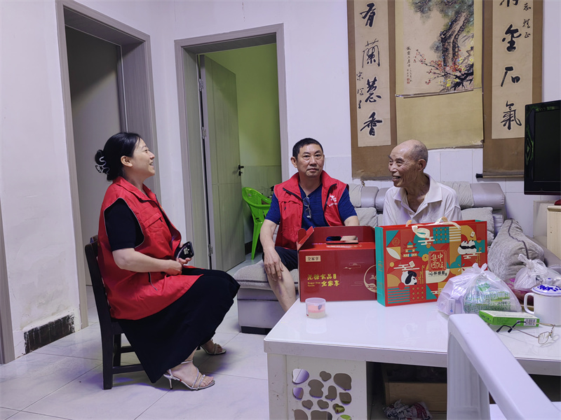 慰问组每到一户,都与退役老兵亲切地聊家常,和军人家属暖心地叙冷暖。他们详细询问慰问对象的身体状况及生活情况,深入了解他们的实际困难和生活需求,及时提供力所能及的帮扶援助。慰问组为他们送上了月饼、养生食品等慰问品,并致以诚挚的节日问候。工作人员表示:“每次与老兵们交谈,都是一次心灵的洗礼与净化,他们的神情中充满了对祖国的忠诚与热爱,从他们逐渐衰老的容颜中,我们深感现在的幸福生活来之不易,能为他们送上关怀与问候,我们深感荣幸与自豪。”
