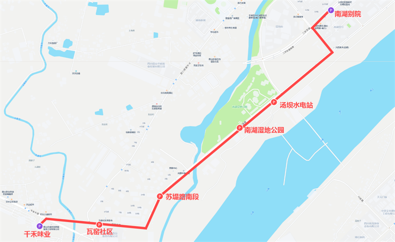 1.站点设置:眉山东站-紫竹西街-火车站-三苏大道西段-CNG加气站-眉山中学-长安中路-颍州北路-区工会-通惠小学-子瞻医院-眉象路口-三苏祠(西)-下西街-正西街-小南街-仓房街-东风街口-苏母公园-二环东路南段-南湖别院-汤坝水电站-南湖湿地公园-苏堤南路-瓦窑社区-千禾味业。
