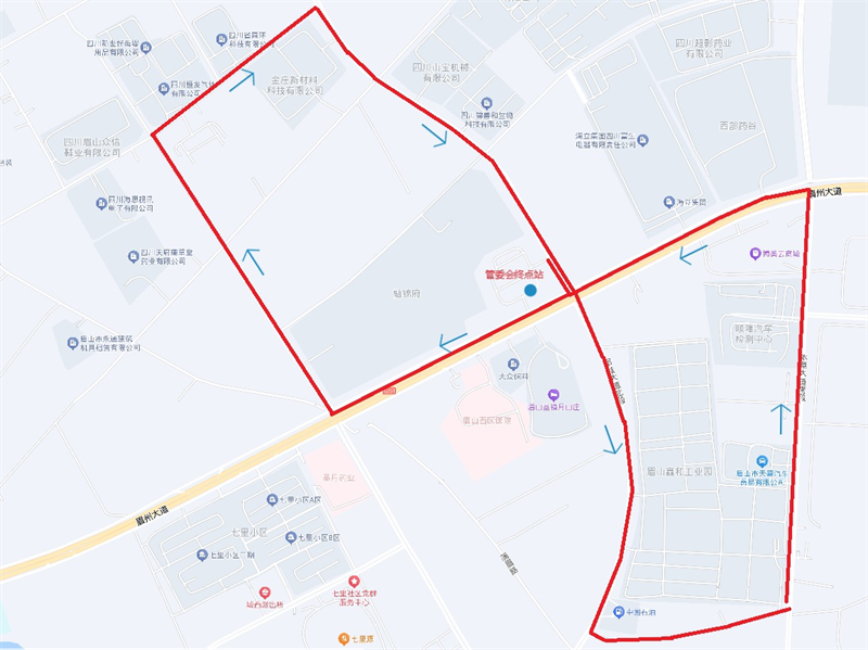眉山经开区新区内循环公交线路覆盖示意图