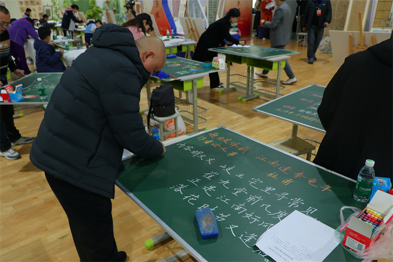 比赛分为学生组和教师组,学生组设有中国书法与中国画两个项目,涵盖小学、初中和高中(中职)三个组别;教师组则聚焦粉笔字板书设计。现场采用即兴创作形式,考验着每位选手的艺术功底与应变能力。