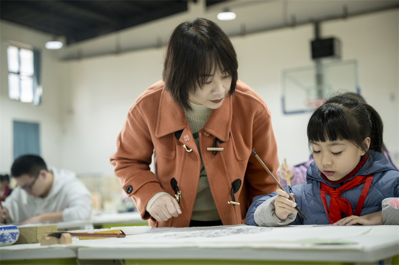 现场,随着一声令下,选手们迅速进入状态。在粉笔字板书设计创作现场,教师们凝神静气,运笔如飞,尽显扎实的功底与独特的创意。在书法创作中,参赛者们笔触疾飞,沉稳有力,横竖撇捺间,或大气刚劲,或飘逸隽秀的汉字呈现在宣纸上,现场弥漫着笔意激起的淡淡墨香。在中国画创作中,选手们泰然自若,通过笔触的轻重、疏密、快慢,形成画面的节奏感,跃然于纸上的是光影和空间的美感,更是少年的胸怀与气概。