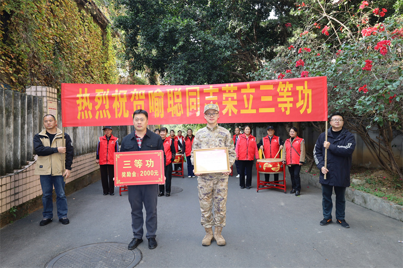 年少从戎离乡去,枕戈待旦谋国防;而今壮年屡建功,强军征程继辉煌。11月21日,伴随着阵阵震耳欲聋的锣鼓唢呐声和周边群众的热烈掌声,彭山区退役军人事务局联合区人武部、街道党政领导分别来到观音街道和凤鸣街道,为喻聪、彭润东两位现役军人家庭送去个人三等功喜报和奖励金。