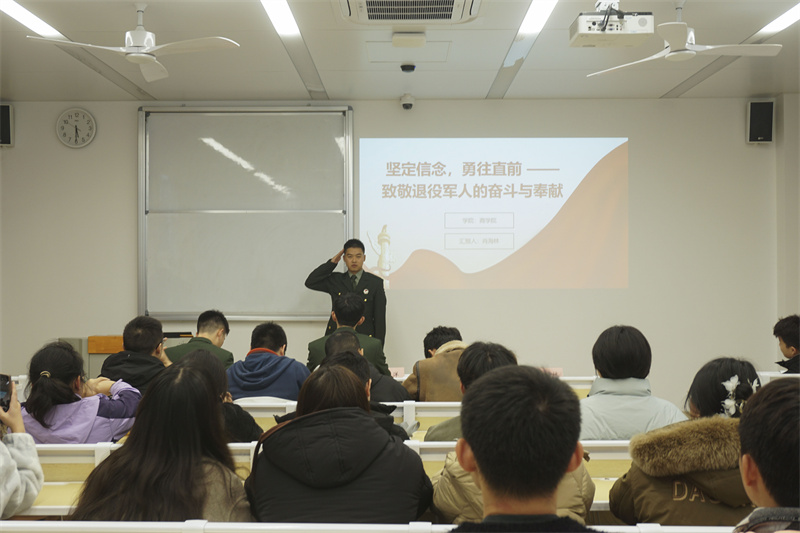 报告会在庄严的国歌声中拉开帷幕。随后,六名退役大学生围绕入伍初心、军旅生涯回顾、退役后的奋斗历程以及红色基因传承等多方面,以真挚的情感和生动的语言,讲述他们的经历和成长,分享了迷彩戎装的青春感悟,展现退役军人坚定的信念和顽强拼搏的意志,激励同学们勇敢追逐青春梦想,把爱国之心化为爱国之行,为祖国奉献热血青春。