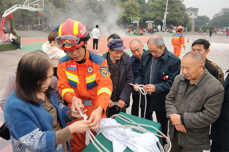 ——进社区。11月7日,县消防救援大队联合县红十字会、洪川镇阳光社区关圣街党支部,在阳光社区开展了“以练筑防• 生命至上”消防应急演练。活动中,消防宣教员向社区居民讲解了消防知识。随后,开展了模拟逃生演练和灭火演练。阳光社区关圣街党支部书记伍继红表示:“下一步,我们还会通过入户、集中座谈会等多种形式的宣传,增强居民的消防安全意识。”