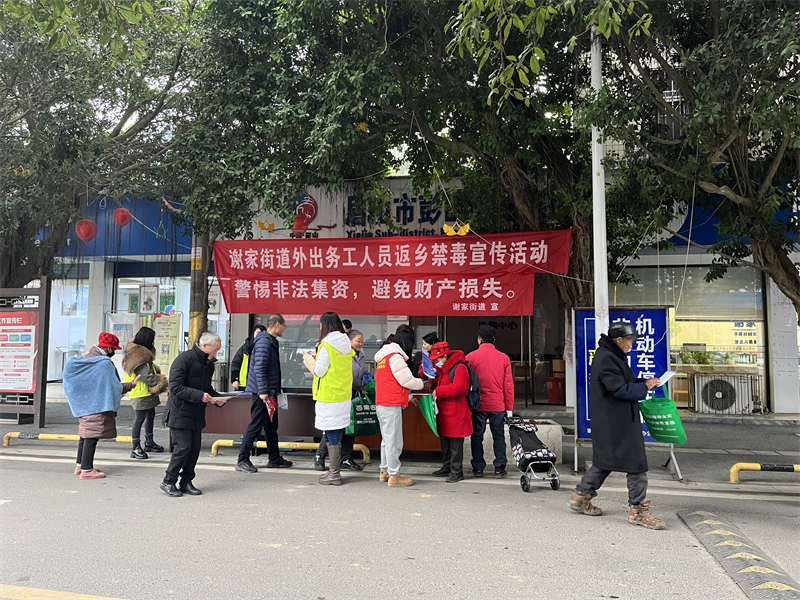 随着春节的脚步日益临近,大量外出务工人员陆续踏上返乡旅程。为切实提高外出务工返乡人员的禁毒意识和防范能力,近日,彭山区谢家街道紧抓这一关键节点,精心组织禁毒社工、辖区派出所民警、司法所工作人员及各村(社区)工作人员开展了一场以“珍爱生命 远离毒品”为主题的禁毒宣传活动。