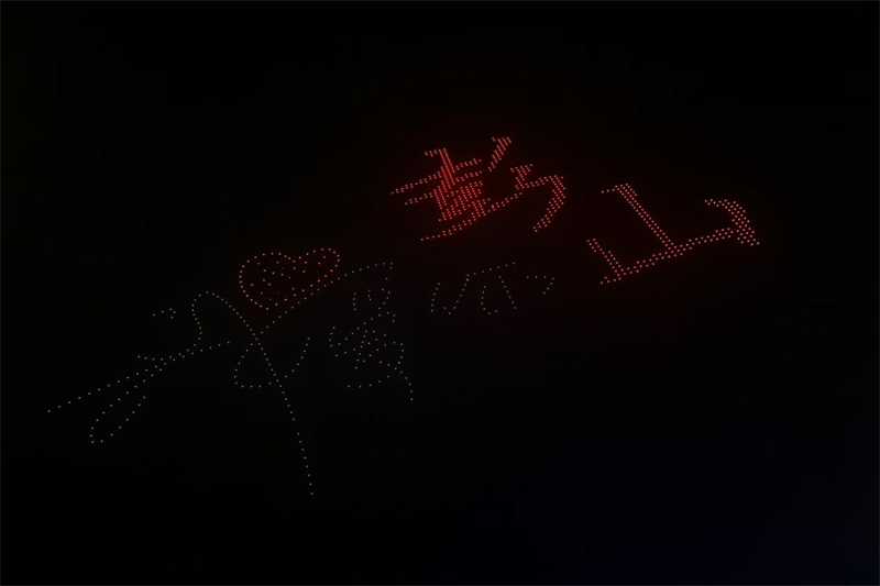 活动最后,千架无人机绚烂升空,时而呈现“我爱你彭山”“我爱你中国”,时而变化出鲲鹏、彭祖形象,更展现了即将建成的江口沉银博物馆,在夜空中描绘出一幅幅星光熠熠、美轮美奂的璀璨画卷,给现场群众带来了极具冲击感的视觉享受。