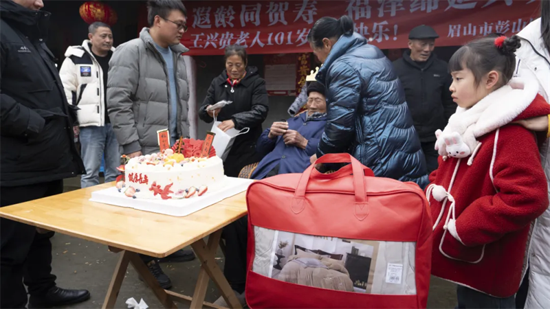 为进一步弘扬敬老爱老的社会风气,增强公众对长寿文化的认识。2月9日上午,蛇年新春佳节,彭山区民政部门工作人员满怀热忱,奔赴黄丰镇,为年满101岁的王兴贵老人贺寿。