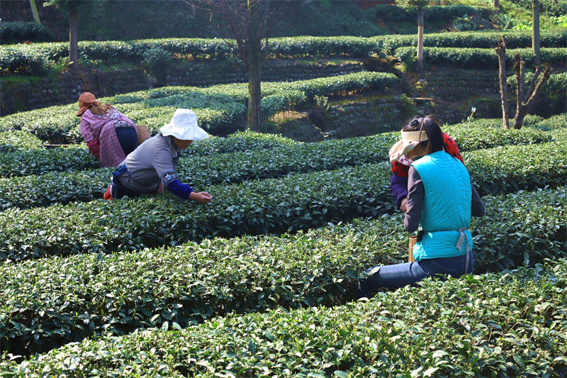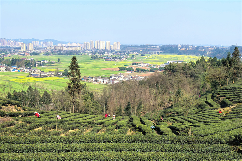 阳春三月,随着气温回升,四川省眉山市洪雅县止戈镇青杠坪村的万亩茶园迎来春茶采摘的黄金时节。茶农们穿梭在茶树间,手法娴熟地采摘着鲜嫩的茶芽,脸上洋溢着丰收的喜悦。